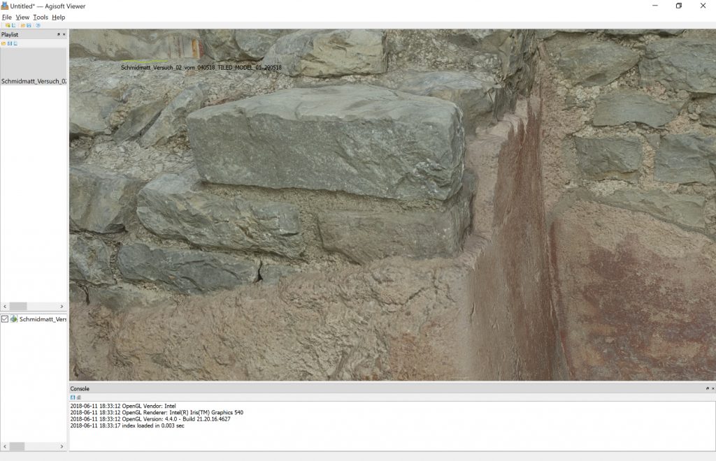 Photogrammetrie Ruine Schmidmatt erstellt mit Agisoft Photoscan (Screenshots aus dem Agisoft Viewer).