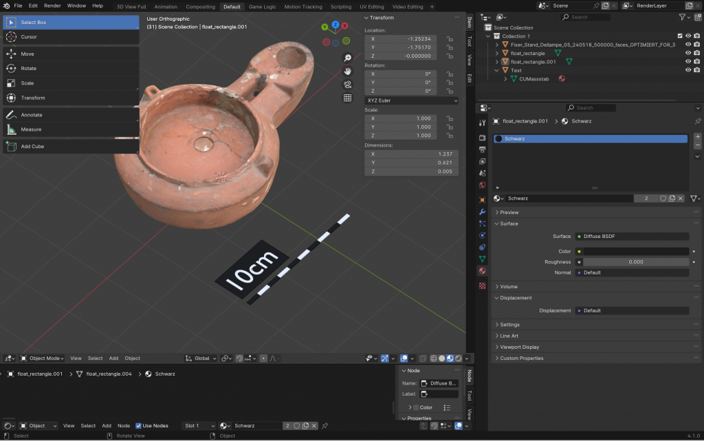 Photogrammetrie Oellampe mit Agisoft Photoscan. Nachbearbeitung und Rendering in Blender 2.79.